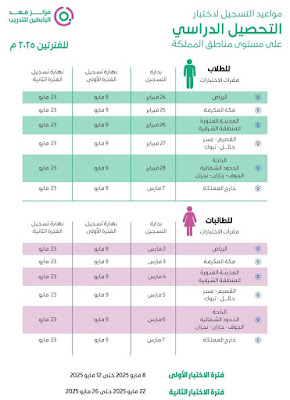 مواعيد تسجيل لاختبار التحصيلي الدراسي على مستوى مناطق المملكة